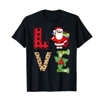 Black Cute Santa Red Black Plaid Pajamas Leopard Print Santa T-Shirt