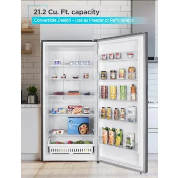 Show more Introducing the **BLACK+DECKER 21.2 Cu. Ft. Convertible Freezer Refrigerator**, an innovative kitchen appliance tailored for families and individuals seeking versatile storage solutions. With a stunning stainless look that complements any décor, this upright freezer easily transitions to a full-size refrigerator, offering the flexibility you've always desired. Equipped with up to **21.2 cubic feet of capacity**, it’s spacious enough to hold your bulk frozen foods, meats, and snacks, keeping everything organized and within reach. Enhance your kitchen experience with this multi-functional appliance that meets all your food storage requirements.