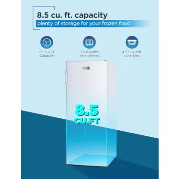 Show moreIntroducing the BLACK+DECKER 8.5 Cu. Ft. Upright Freezer, an essential appliance for any home needing extra food storage. This stand-up freezer is crafted with functionality and efficiency in mind, making it perfect for kitchens, basements, or garages. With a spacious 8.5 cubic feet capacity, it provides ample space for all your frozen foods, ensuring that nothing goes to waste. Enjoy the convenience of easy access to your items with the thoughtfully designed mechanical temperature control that allows you to customize the settings for optimal food preservation. This compact yet roomy freezer offers an elegant finish in white, seamlessly fitting into your home décor while offering peak performance. Say goodbye to overcrowded freezers and hello to smarter storage solutions!