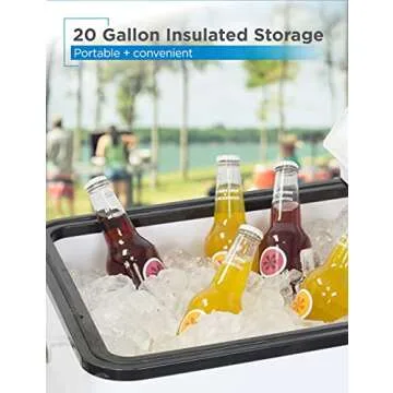 BLACK+DECKER Mobile Cooler on Wheels, 20 Gallon Insulated Rolling Cart with Stainless Steel Bottle Opener, Bar Cart with Wheels and Beverage Cooler with Drain, Ice Chest with Wheels, White