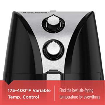 BLACK+DECKER Purify 2-Liter Air Fryer - Perfect for Healthy Cooking, Black/Stainless Steel