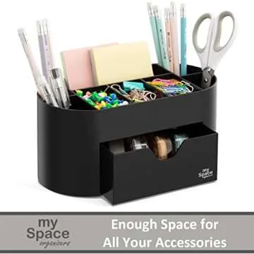Black Desk Organizer for Office Supplies and Desk Accessories - Pen Holder Desktop Organization for Room College Dorm Home School (Black)
