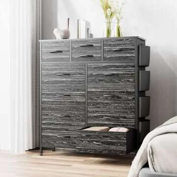 Black Dresser for Bedroom Dresser 12 Chest Drawers w/Side Pockets and Hooks, Tall Fabric Dresser Organizer, Clothes Storage Dresser for Closet, Living Room, Hallway, Entryway