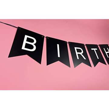 Black Happy Birthday Banner, Black Happy Birthday Bunting Banner with White Letters Birthday Party Decoration Supplies