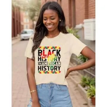 Show moreThis Black History Month shirt embodies a vibrant celebration of African American culture, making it a significant addition to any wardrobe. Crafted from breathable and stretchy fabric, this tee ensures maximum comfort, allowing you to wear it all day without feeling restricted. Whether you’re attending events during Black History Month in February or celebrating Juneteenth in June, this shirt provides an ideal way to express your pride and consciousness. Its lightweight and sweat-absorbent qualities make it particularly suitable for warm weather, while the soft texture is perfect for all-day wear.