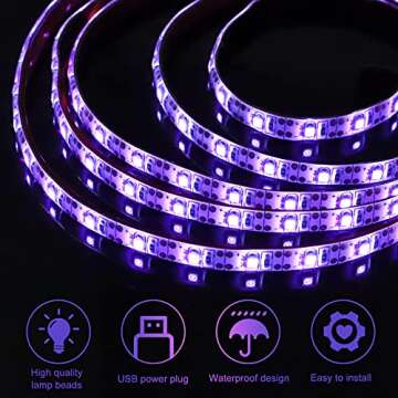 Unlike many other black light options on the market, our UV LED strip offers not only a high density of LEDs, making it far more radiant, but it is also backed by superior safety features due to its USB power source. While other models may struggle with waterproofing and flexibility, this strip is crafted to resist moisture, affording you the versatility to use it effectively in any environment, indoors or outdoors. Its easy installation process is straightforward compared to cumbersome installations required by competing products, allowing for quick deployment to achieve spectacular results.