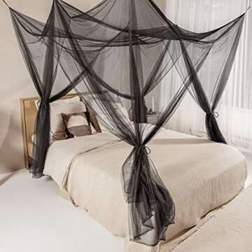 Black Mosquito Net for Beds – 4 Openings & 6 Hanging Loops