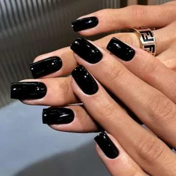 Show more Introducing the Black Press on Nails Short Medium Square Glue on Nails Set by Xcreando – your new go-to solution for achieving stunning manicured nails without the hassle of a salon visit. This exquisite set features 24 beautifully crafted nails in a chic, medium length, offering a perfect balance between elegance and practicality. Made from high-quality gel, these press-on nails guarantee durability and a lifelike appearance that blends seamlessly with your natural nails.