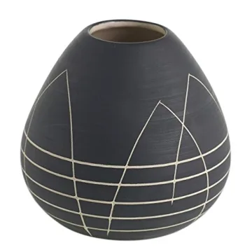 Black Round Bud Vase - 4 x 4 Inches with Elegant White Design for Modern Decor