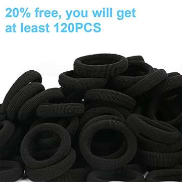 Black Seamless Hair Ties – Cotton Hair Bands – Tiny Elastics Ponytail Holders for Toddlers, 1 Inch in Diameter, Black, by Nspring