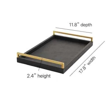 Show moreIntroducing the exquisite Black Shagreen Serving Tray, an elegant decorative accent for your home that combines functionality with high-end aesthetics. Crafted from premium quality materials, this tray features a stunning black shagreen leather exterior and brushed gold stainless steel handles, making it the perfect accessory to elevate the look of any space. With its generous dimensions of 17.8 x 11.8 x 2.4 inches, this versatile tray not only adds sophistication but also serves as a practical solution for organizing your essentials such as keys, mail, makeup, or drinks. It effortlessly blends into any decor style, making it a standout piece in your living room, bathroom, or kitchen.