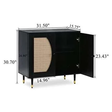 Black Sideboard Buffet Cabinet with Handmade Natural Rattan Doors, Rattan Accent Cabinet Kitchen Storage Cabinet with Adjustable Shelves, Modern Entryway Cabinet Console Table for Living, Set of 2
