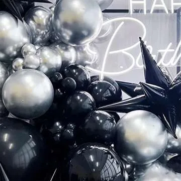 Black Silver Balloon Garland 121PCS Black Star Birthday Party Decoration Anniversary Home Decor