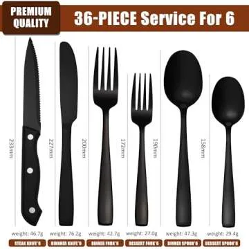 Black Silverware Set for 6, 36 Piece Flatware Set, Supercook Silverware Set Stainless Steel, Satin Finish Black Cutlery, inchlude Steak Knife, Dinner Knife, Fork and Spoon, Dishwasher Safe, Square