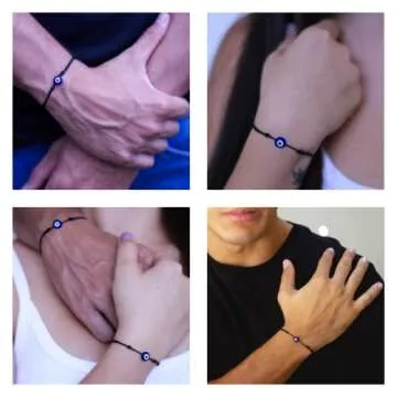 Black String Evil Eye Bracelet – Adjustable Wax Nylon Cord Talisman | Handmade Protection Amulet with Blue Turkish Glass Bead for Men, Women & Teens