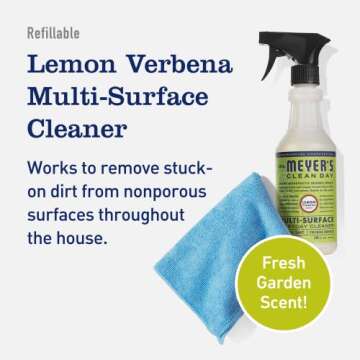Black Swan Distribution Mrs Meyer's All-Purpose Cleaner Spray, Lemon Verbena, 16 oz & Non-Abrasive and Distributors Washable Microfiber Cleaning Cloth (15x15 in) - Household Multi-Surface Kit
