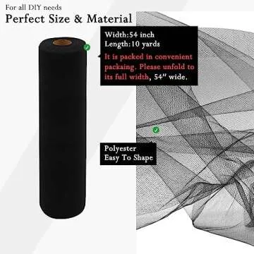 Black Tulle Fabric Rolls 54 Inch by 10 Yards Fabric Tulle Bolt for Wedding Halloween Decorations Gift Wrapping DIY Tutu Baby Shower Table Skirt Birthday Party Craft Supplies