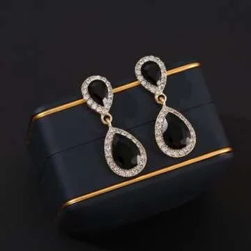 Show moreIntroducing our exquisite Black Vintage Rhinestone Teardrop Dangle Earrings, an elegant addition to your jewelry collection that beautifully combines sophistication with a hint of glamour. Crafted with double sparkly teardrop crystal stones, these earrings showcase a pear-shaped silhouette that exudes timeless elegance. The design not only enhances the neckline but also adds a graceful flourish to your overall look. Each time you move, these earrings sway delicately, creating a captivating effect that complements various hairstyles and necklines alike.