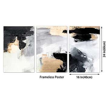 Transform your living space with the stunning Black White Gray Gold Wall Art, a captivating canvas art set comprising three exquisite pieces measuring 16x24 inches each. Expertly crafted using high-quality materials, this frameless wall decor features a beautiful blend of black, white, and gold abstract designs that effortlessly blend with any décor style. Suitable for various settings, such as your bedroom, living room, study, or café, this striking art collection will catch the eye of...
