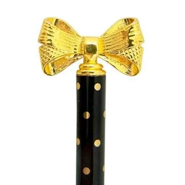 Black with Gold Polka Dot Bow Top Pen, 5 1/2 Inch, Pack of 2