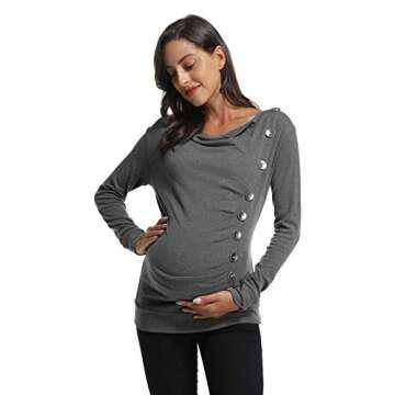 BlackCherry Women's Long Sleeve Cowl Neck Buttons Maternity Tunic Top T-shirt, Grey, Small