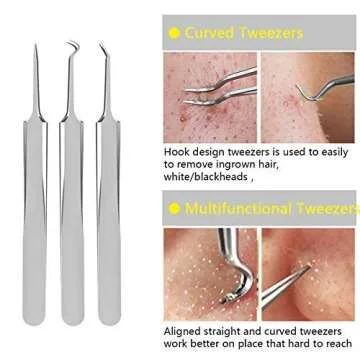 Show moreIntroduce a new level of confidence and clarity to your skincare routine with the Blackhead Remover Tool, Aooeou Professional Pimple Popper Tool Kit. This all-in-one solution boasts a comprehensive set of 10 specialized tools, meticulously crafted from high-quality stainless steel. Each tool in this kit is designed for maximum efficacy, ensuring you can tackle blackheads, acne, and various blemishes with ease. Enjoy the peace of mind that comes with using tools that can be safely sanitized, thanks to their corrosion-resistant material. Elevate your facial care and maintain a fresh, clear complexion with this indispensable kit!