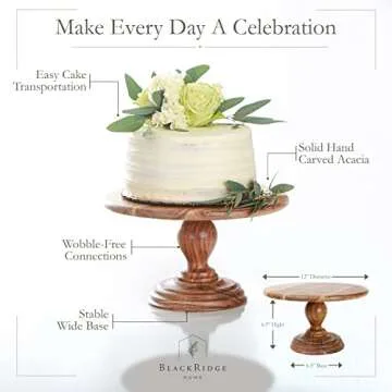 Show more This exquisite Acacia Wood Cake Stand is the perfect blend of elegance and functionality, designed to elevate any occasion. Crafted from stunning acacia wood, the stand showcases exquisite grain patterns that add a touch of natural beauty to your decor. The sturdy construction ensures durability, making it ideal for displaying cakes, pastries, or even seasonal decorations. The thoughtful design allows for easy assembly while providing a stable base for a variety of items, including two-tiered cakes. With its classic style, this cake stand complements both modern and traditional settings, making it a versatile addition to your home.