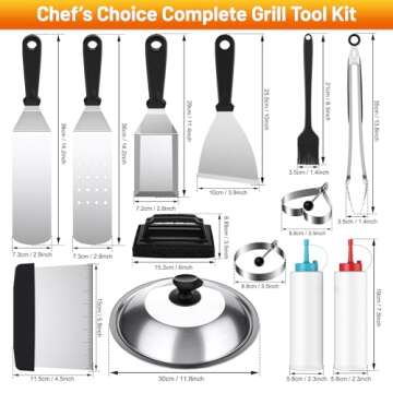Blackstone Griddle Accessories Kit,14pcs Flat Top Grill Accessories Set for Blackstone and Camp Chef, Enlarged Spatulas, Basting Cover, Scraper, Tongs, Grill Spatula Kit for Outdoor BBQ