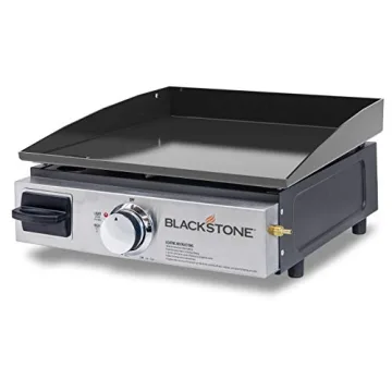 Show more Introducing the Blackstone Table Top Grill - 17 Inch Portable Gas Griddle, your ultimate companion for outdoor culinary adventures! Perfectly designed for camping, tailgating, or picnicking, this compact griddle packs a powerful punch with its impressive 12,000 BTUs of heat generated from an H-Style burner. Measuring 268 sq. inches, the heavy-duty cold-rolled steel cooking surface is both durable and efficient, ready to serve up your favorite meals to family and friends wherever you are. Whether you're grilling juicy steaks, sautéing fresh veggies, or whipping up breakfast favorites, the Blackstone griddle delivers restaurant-quality results and unforgettable flavors! Less