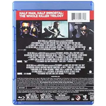 Show moreExperience the thrill of vampire hunting with the classic Blade trilogy, featuring the iconic performances of Wesley Snipes. This remarkable collection includes all three films: Blade, Blade II, and Blade: Trinity, presented in a beautifully designed case. As you delve into the intense action and captivating storytelling, you'll witness how Blade, a half-human, half-vampire, battles the forces of evil, accompanied by a cast of memorable characters.