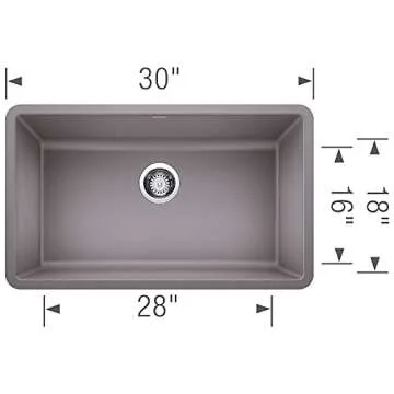 Show moreIntroducing the BLANCO 442536 Precis Single Bowl-Metallic Gray 30" Kitchen Sink, a perfect blend of durability, style, and functionality for your kitchen. This sink's sleek metallic gray finish not only enhances your kitchen's aesthetic but also integrates seamlessly with contemporary decor. Designed for ultimate performance, this sink offers a generous depth of 9.5 inches, ideal for washing large pots and pans. The precision-engineered dimensions of 30" L x 18" W ensure a perfect fit for cabinets with a minimum base of 30 inches, making installation a breeze. Whether you are a culinary enthusiast or simply appreciate quality craftsmanship, this sink is tailored to meet your needs with ease.