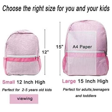 BLANKSMALL Toddler Backpack, Seersucker Small Kids Backpack, Classic Mini Preppy School Preschool Kindergarten Children Bag 12" H x 9.5" W for 2-5 Years (Pink)