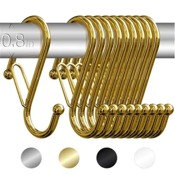 Show moreIntroducing the Blau Marité 10 Metallic S-Hooks with Anti-Fall System, a revolutionary addition to your storage solutions. Designed with both functionality and safety in mind, these heavy-duty S-shaped hooks are not just a stylish accessory for your home, but a necessary tool for ultimate organisation. Each hook measures 3.25 inches long and is crafted to fit bars with a thickness of up to 0.8 inches. This unique feature ensures that they remain securely in place while holding your belongings.
