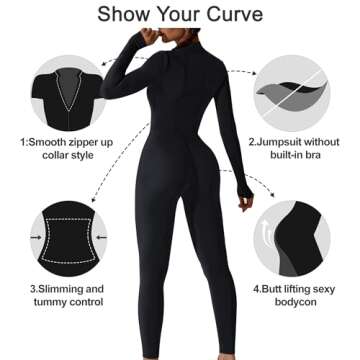 Blaward Jumpsuits for Women Yoga Jumpsuits Workout Long/Short Sleeve Romper Zip Bodycon Sports Casual Unitard Playsuit