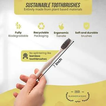 Show more Introducing the Bleeker and Rowe Eco Toothbrush, a revolutionary step towards a greener planet! This product is designed to combat one of the fiercest threats to our environment: plastic waste. Crafted from a unique blend of corn starch and corn husk, this biodegradable toothbrush is an easy swap for those looking to make a positive impact on the world. Each toothbrush is not only eco-friendly, but it also boasts a very low carbon footprint.