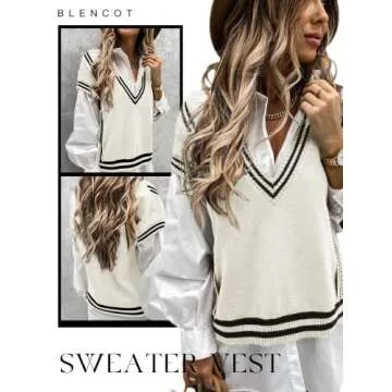 Show moreIntroducing the **BLENCOT Fall Sweater Vest** for Women, a stunning blend of fashion and comfort, designed to elevate your autumn wardrobe. Crafted from a lightweight and breathable fabric, this casual sleeveless knitted sweater vest ensures supreme comfort, making it friendly to your skin. Its stylish *V-neck* and unique *turtleneck* design provide versatility, allowing you to dress it up or down effortlessly. This vest is not just a fashion statement; it also keeps you warm during those crisp fall days while making you look effortlessly chic.
