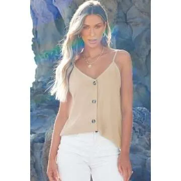 BLENCOT Women Button Down V Neck Strappy Tank Tops Loose Casual Sleeveless Vests Shirts Blouses X-Large Apricot
