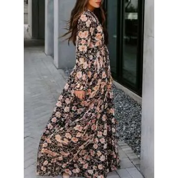 Show more The Women's Bohemian Floral Printed Maxi Dress is the epitome of relaxed elegance, perfect for those warm summer days and special occasions alike. With a beautiful V-neck design, this dress boasts a delightful boho floral print that exudes effortless charm. Crafted from soft and comfy materials, it ensures you're not just looking good but are also ready for all-day wear. This stunning long sleeve maxi dress is designed to flow with your every movement, offering both comfort and style.