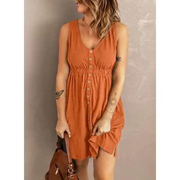 BLENCOT Women's Summer V Neck Button Down Swing Dress - Orange S