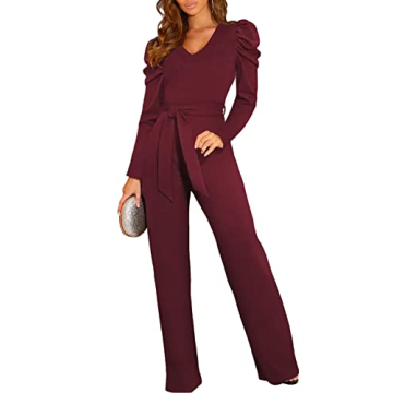 BLENCOT Women V Neck Jumpsuit - Belted Wide Leg Dresses for Elegance
