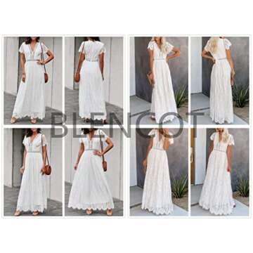 Show moreIntroducing the exquisite BLENCOT Women’s Casual Floral Lace Deep V Neck Short Sleeve Long Evening Dress, a perfect blend of elegance and bohemian charm. Crafted from a soft floral lace fabrication, this stunning dress will make you feel comfortable and stylish for all occasions. With a delightful short sleeve design and a mesmerizing deep V neck, it gracefully enhances your silhouette while offering an alluring appeal. Whether you're attending a wedding, enjoying a summer beach outing, or turning heads at a cocktail party, this long maxi dress is your go-to choice. It embodies the essence of effortless style while making a fashion statement that'll leave everyone in awe.