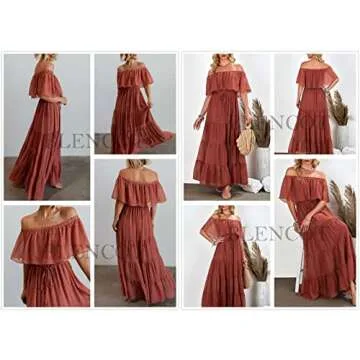 Show moreStep into the spotlight with the exquisite BLENCOT Women’s Casual Floral Lace Swiss Dots Off The Shoulder Long Evening Dress. This captivating piece is designed for the modern woman who cherishes comfort without compromising on style. Crafted from an elegant Swiss dots fabrication, this Bohemian-style dress not only exudes femininity but also ensures a soft and cozy wearing experience. With its ruffled short sleeves and off-shoulder design, it perfectly balances classic elegance and a contemporary flair. Whether you're attending a wedding, a cocktail party, or a summer outing, this dress will have all eyes on you. The enchanting flow of this long maxi dress accommodates all body types and offers a flattering silhouette, making it an ideal choice for any occasion. Get ready to turn heads and feel fabulous in this stunning dress, designed to elevate your wardrobe for all your summer adventures.