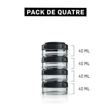 BlenderBottle GoStak Food Storage Containers for Protein Powder, Healthy Snacks, and Portion Control, 40cc (Pack of 4), Black