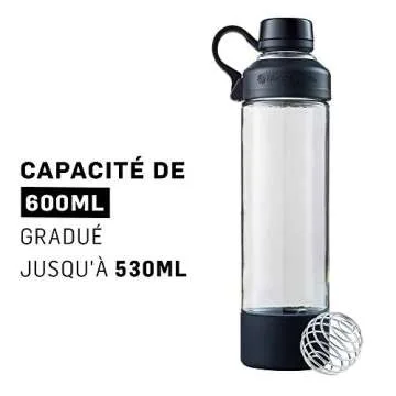 BlenderBottle Mantra Glass Shaker Bottle, 20-Ounce, Black
