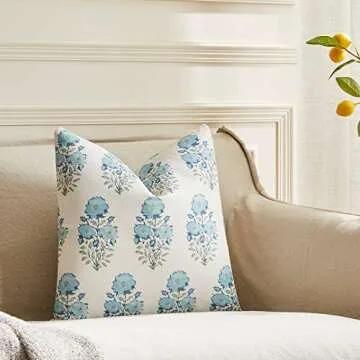 BLESFEST Pack of 2, Blue Floral Pillow Cover 18 x 18 Inch Mughal Flower Throw Pillow Cover Linen Farmhouse Pillow Case Cushion Covers for Sofa Couch Living Room