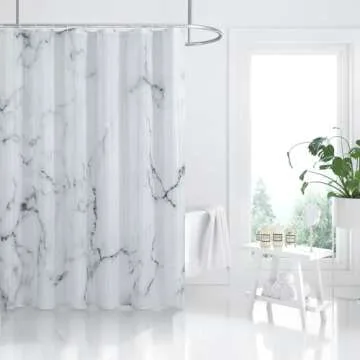 BLESFOREVER Grey White Marble Shower Curtain Set with 12 Hooks, Abstract Modern Luxury Gray White Marble Shower Curtains for Bathroom, Waterproof Fabric, 72" W X 72" L