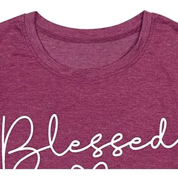 Blessed T-Shirt for Women Cute Simple Sayings Heart Graphic Letter Print Shirts Casual Short Sleeve Thankful Tee Tops-Purple M