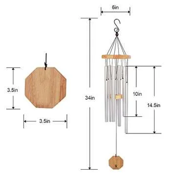 Show more Introducing the **BLESSEDLAND Premium Wind Chimes**, a beautiful and serene addition to your garden, patio, or home decor. Designed for those who appreciate the calming sounds of nature, these wind chimes stand tall at 34 inches with elegantly crafted aluminum tuned tubes that produce a *rich, deep tone* with every breeze. Each tube is thoughtfully cut to different lengths, creating a harmonious melody that will soothe and relax you while beautifying your surroundings. Featuring a sleek silver finish, they are not only a musical delight but visually appealing too, making them a perfect gift for loved ones or a treat for yourself!