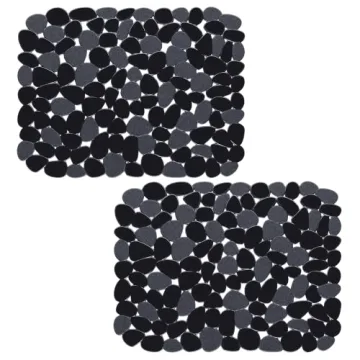 Show moreEnhance your kitchen with the Bligli Pebble Sink Mat, a perfect blend of style and protection designed specifically for stainless steel and ceramic sinks. Each mat in this convenient two-pack measures 15.7 x 11.8 inches, allowing for versatile placement while offering optimal cushioning to safeguard your dishes and sink surface. Crafted from heavy, flexible PVC material, the chic pebble design not only adds a touch of elegance to your kitchen but also provides a secure, non-slip base that remains in place during use. Trim the mat easily to fit around sink drains for a perfect custom fit, ensuring your kitchen looks sleek and organized.