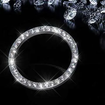 Bling Car Crystal Rhinestone Ring Emblem Sticker, Car Interior Decoration, Bling Car Accessories for Women, Push to Start Button, Key Ignition Starter & Knob Ring (Silver)